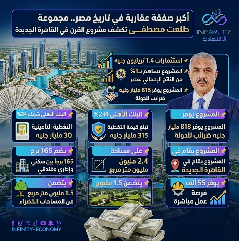 تشهد السوق العقارية في مصر تحركًا لافتًا مع إعلان مجموعة طلعت مصطفى عن إطلاق مشروع عمراني ضخم في القاهرة الجديدة، بإجمالي استثمارات تتجاوز 1.4 تريليون جنيه، في خطوة تعكس تسارع وتيرة التوسع في القطاع العقاري، وتعزز من دوره كمحرك رئيسي للنمو الاقتصادي خلال المرحلة الحالية، خاصة في ظل توجه الدولة نحو دعم الاستثمار والتنمية العمرانية المتكاملة.